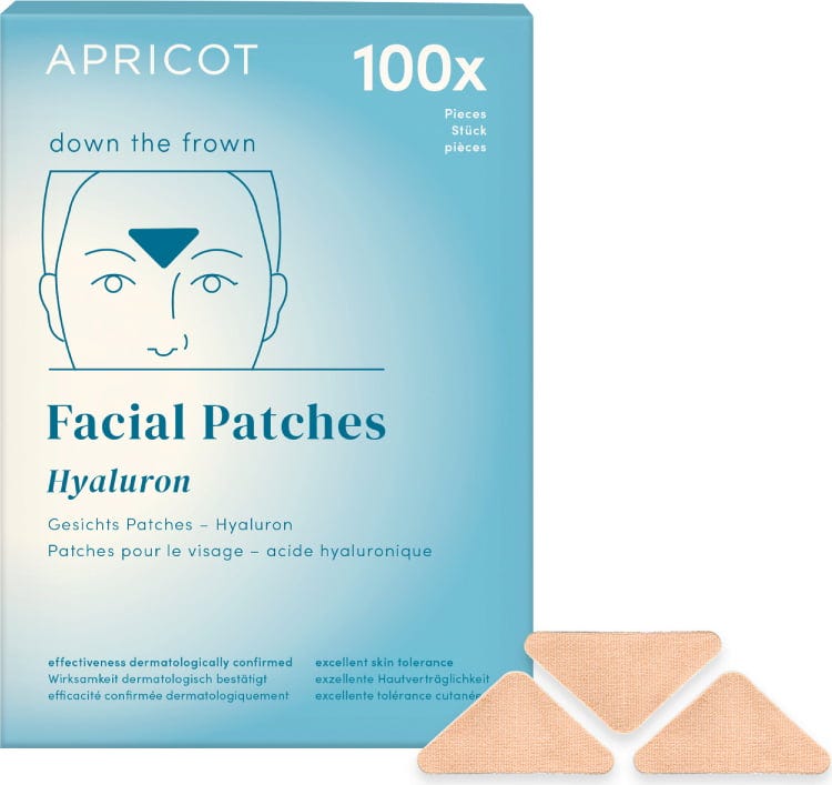 Diese Hyaluron Gesichts‑Patches von APRICOT sind mit wertvollem Hyaluron angereichert und dienen zur Pflege und Glättung deiner Stirnfalten. Die Patches können einmalig angewendet werden. Ideal eignen sie sich auch zur Anwendung über Nacht.