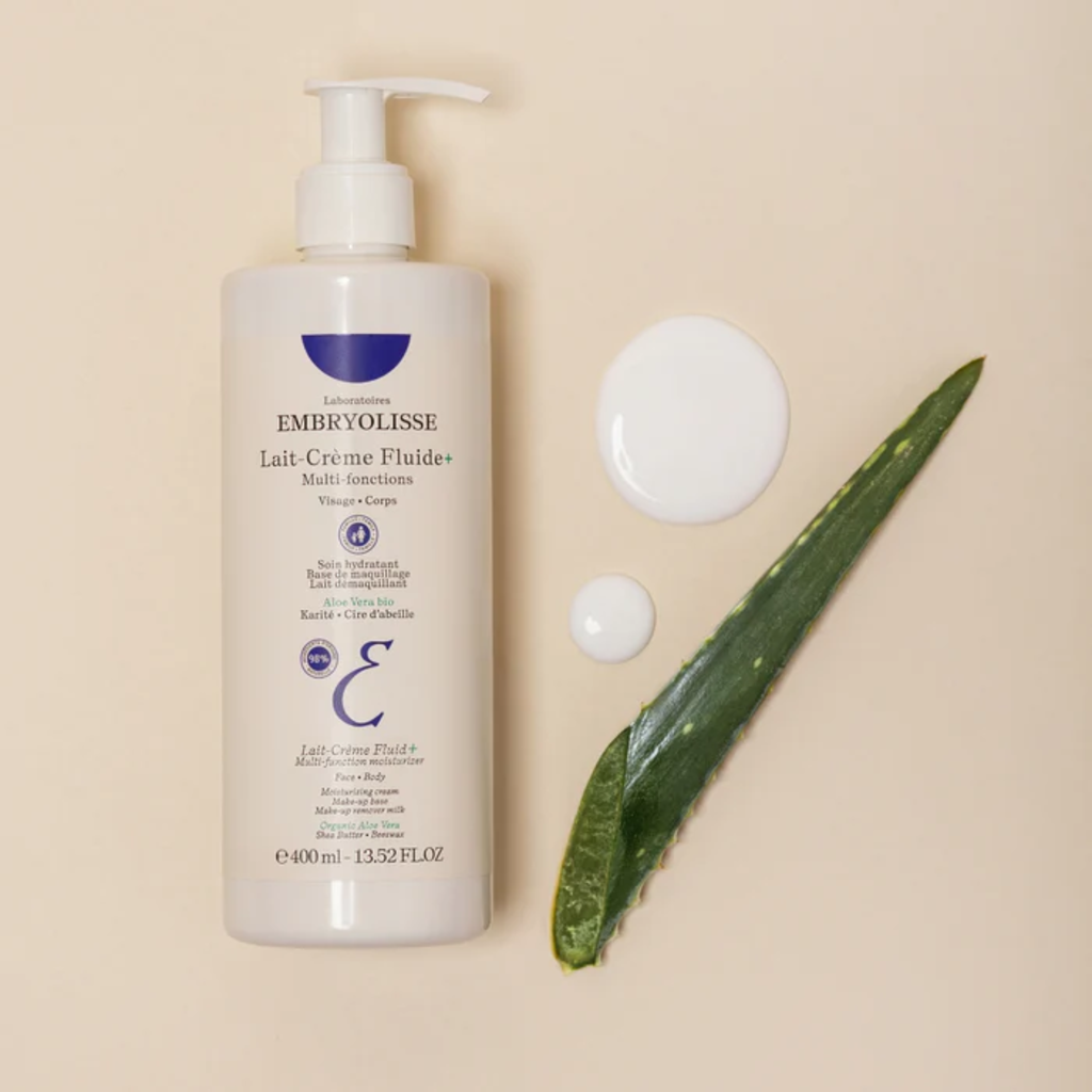 Der Lait-Crème Fluid+ Multi-function Moisturizer von Embryolisse besteht zu 98 % aus Inhaltsstoffen natürlichen Ursprungs und bietet der Haut dank dem Trio aus Bio-Aloe Vera, Bienenwachs und Sheabutter einen intensiven Pflege-Effekt. Außerdem versorgt die Creme die Haut mit Feuchtigkeit und bietet optimalen Schutz vor Umweltstress. Mit ihrer milchigen und leichten Textur deckt der Moisturizer die Hautbedürfnisse der ganzen Familie und ist im Gesicht und auf dem Körper anwendbar.