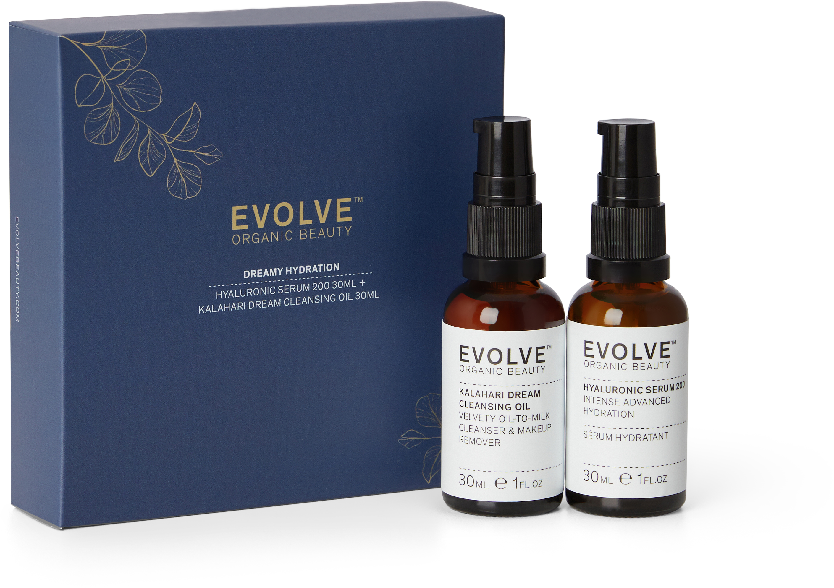 Verschenke ein nächtliches Verwöhn-Duo für wunderschön erholte Haut! Das Dreamy Hydration Gift Set von Evolve Organic Beauty besteht aus dem Kalahari Dream Cleansing Oil und dem Hyaluronic Serum 200.