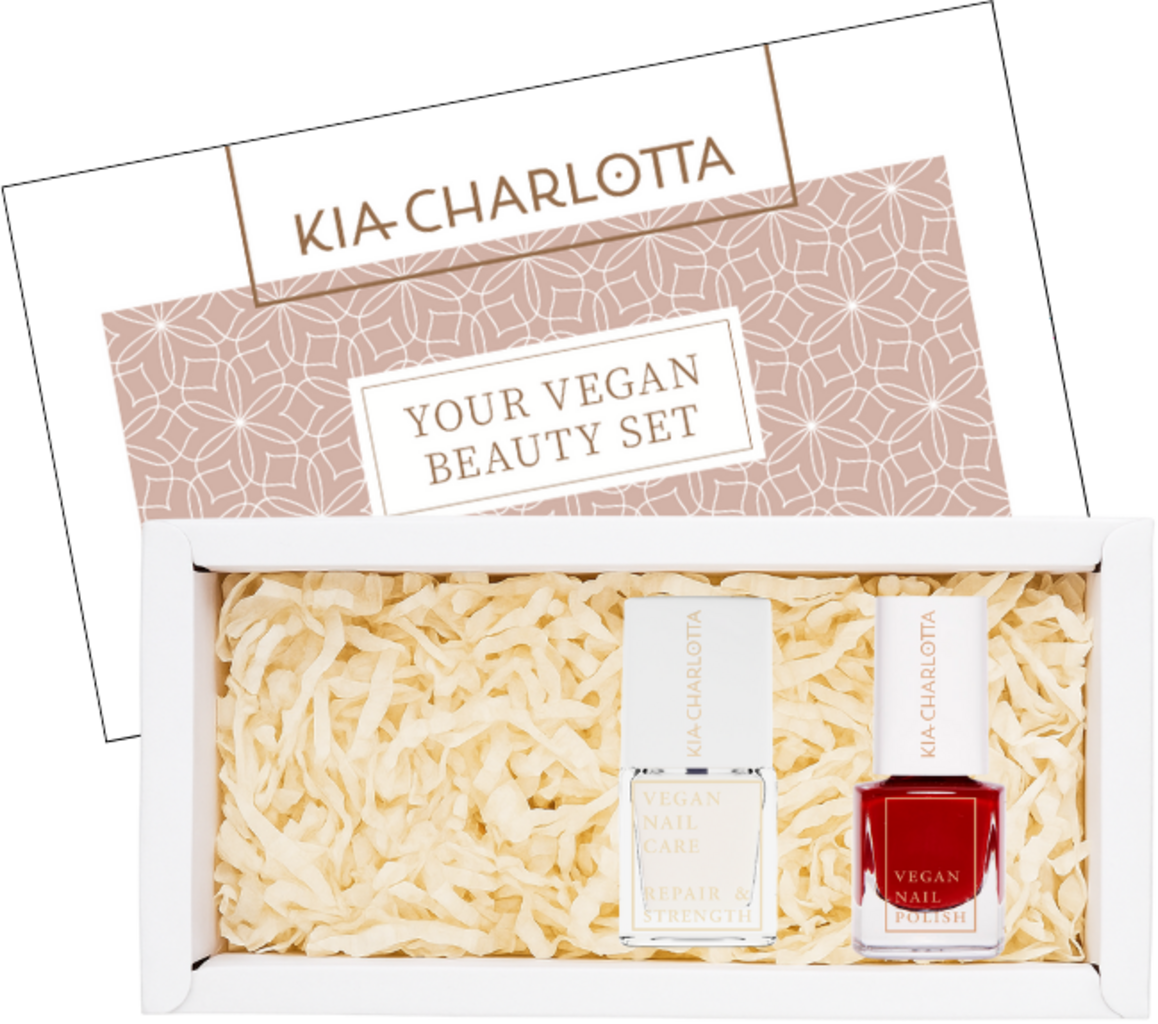 Das Care X-Mas Set von Kia-Charlotta kombiniert Pflege und Farbe: Der Repair & Strength Nagelhärter pflegt und schützt deine Nägel, während der rote Nagellack für einen wunderschönen Glamour-Look sorgt. Verpackt ist das Duo in einer hübschen Box, über die sich alle Beauty Liebhaber:innen freuen.