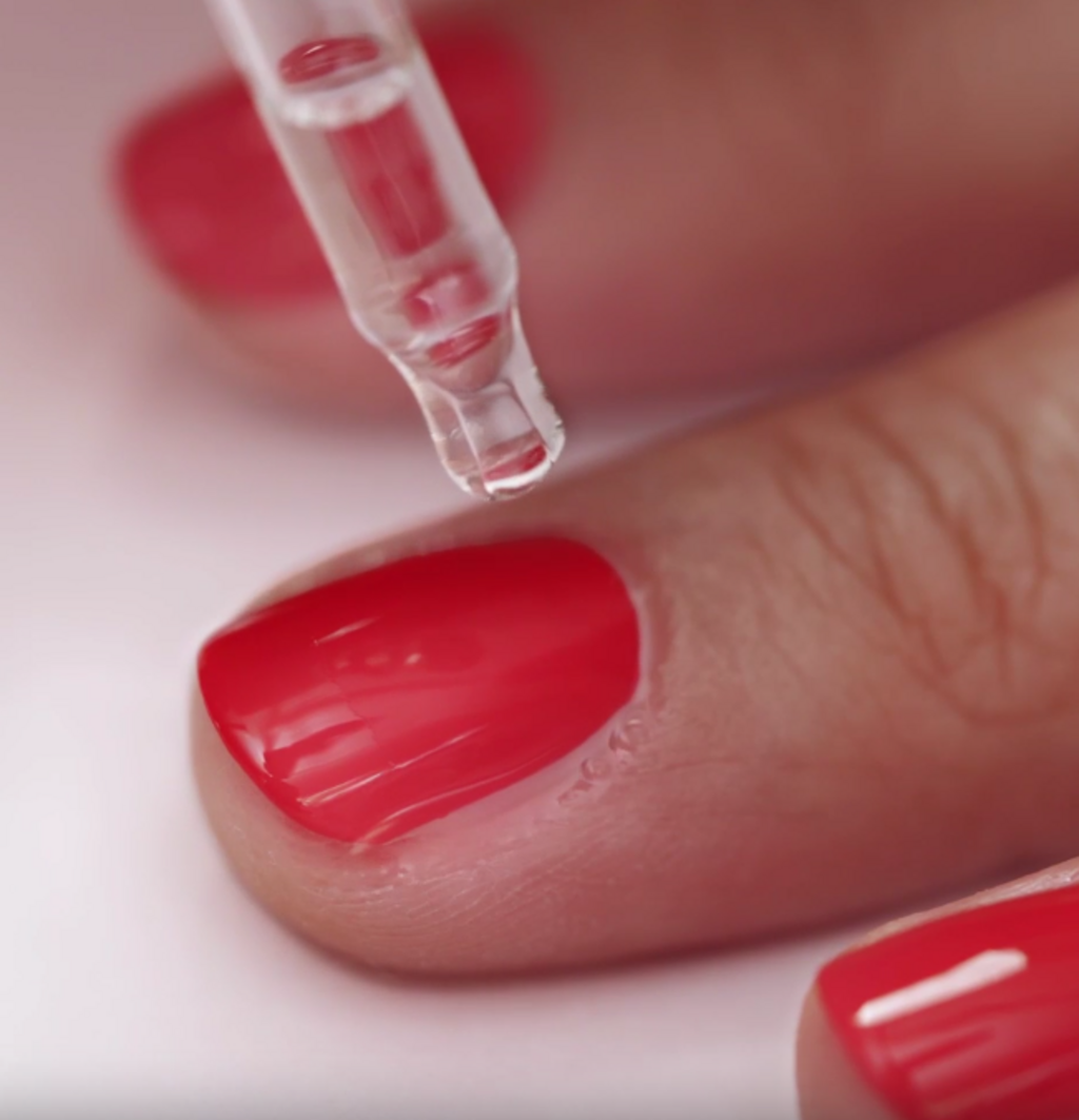 - Trage nach dem Überlack einfach einen Tropfen pro Nagel auf.