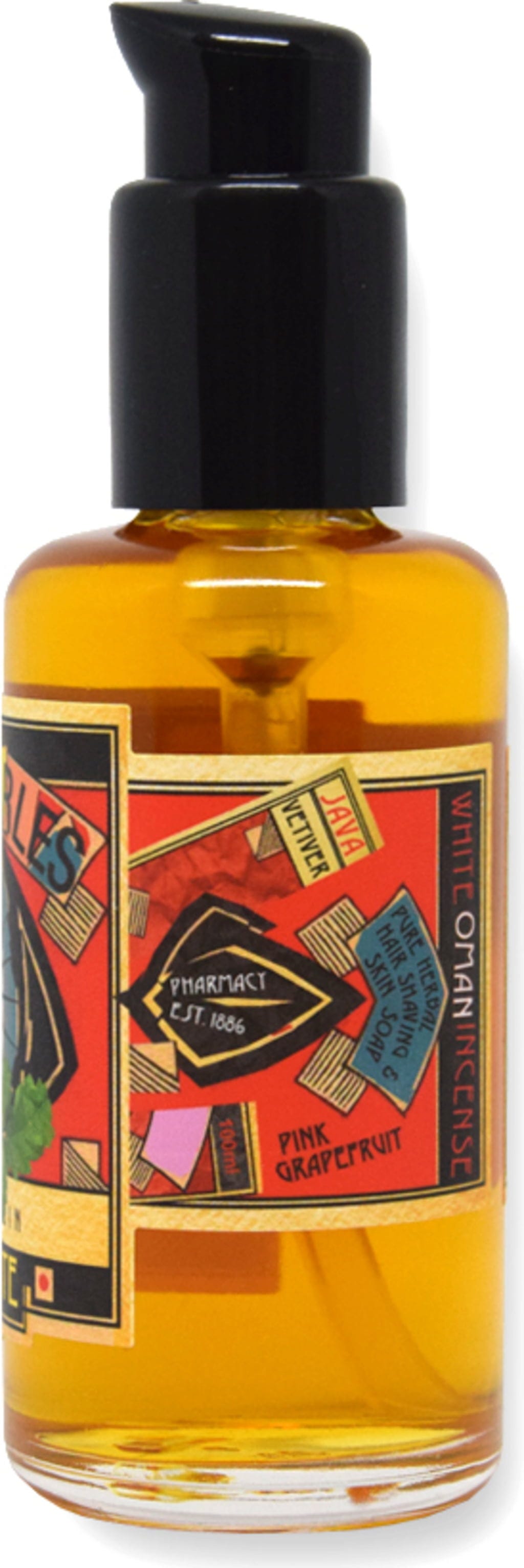 Potassium Linseed Oil, Glycerin, Alcohol, Boswellia Sacra, Boswellia Serrata (Frankincense) Extracts, Vetiveria Zizanoides (Vetivert Essential Oil), Citrus Grandis (Pomelo) Peel Oil, Parfum, Limonene, Citral, Linalool