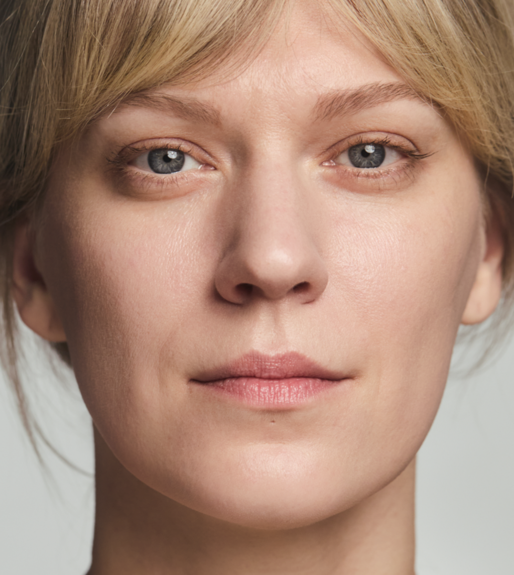 - Glide the stick over the face and blend the cream with your fingers or a brush.