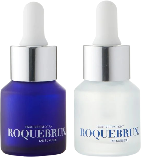 The Mini Set by ROQUEBRUN includes two self-tanning serums that give the skin a naturally bronzed look while providing intensive hydration. They can be applied directly to cleansed skin or mixed with your daily skincare products. Premium ingredients such as plant-based retinol, hyaluronic acid, collagen, and aloe vera help smooth, firm, and soothe the skin. Suitable for all skin types, these self-tanning serums can be used morning and evening, delivering a natural-looking tan without an orange hue. The lightweight, non-greasy textures absorb quickly, are fragrance-free, and develop visible results within 4 to 8 hours that last for 3 to 4 days. Enjoy a sun-kissed complexion while optimising your regular skincare routine.