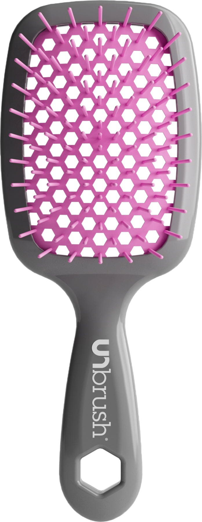 Say goodbye to bad hair days and painful tugging. The Detangling Hair Brush by UNbrush is the new must-have for your mane. Whether you've just got out of the shower or want to freshen up dry hair, this brush glides gently through every knot without having to shed any tears. This is thanks to an ingenious mix of 105 Soft-Flex and UltraFlex bristles in two different lengths, which thoroughly detangle even the most unruly hair and thus effectively reduce hair breakage. Thanks to the lightweight material and ergonomic handle, the brush rests perfectly in the hand and makes combing more effortless than ever before. The perforated body of the brush, in combination with the heat-resistant bristles, also reduces blow-drying time by up to 48%.