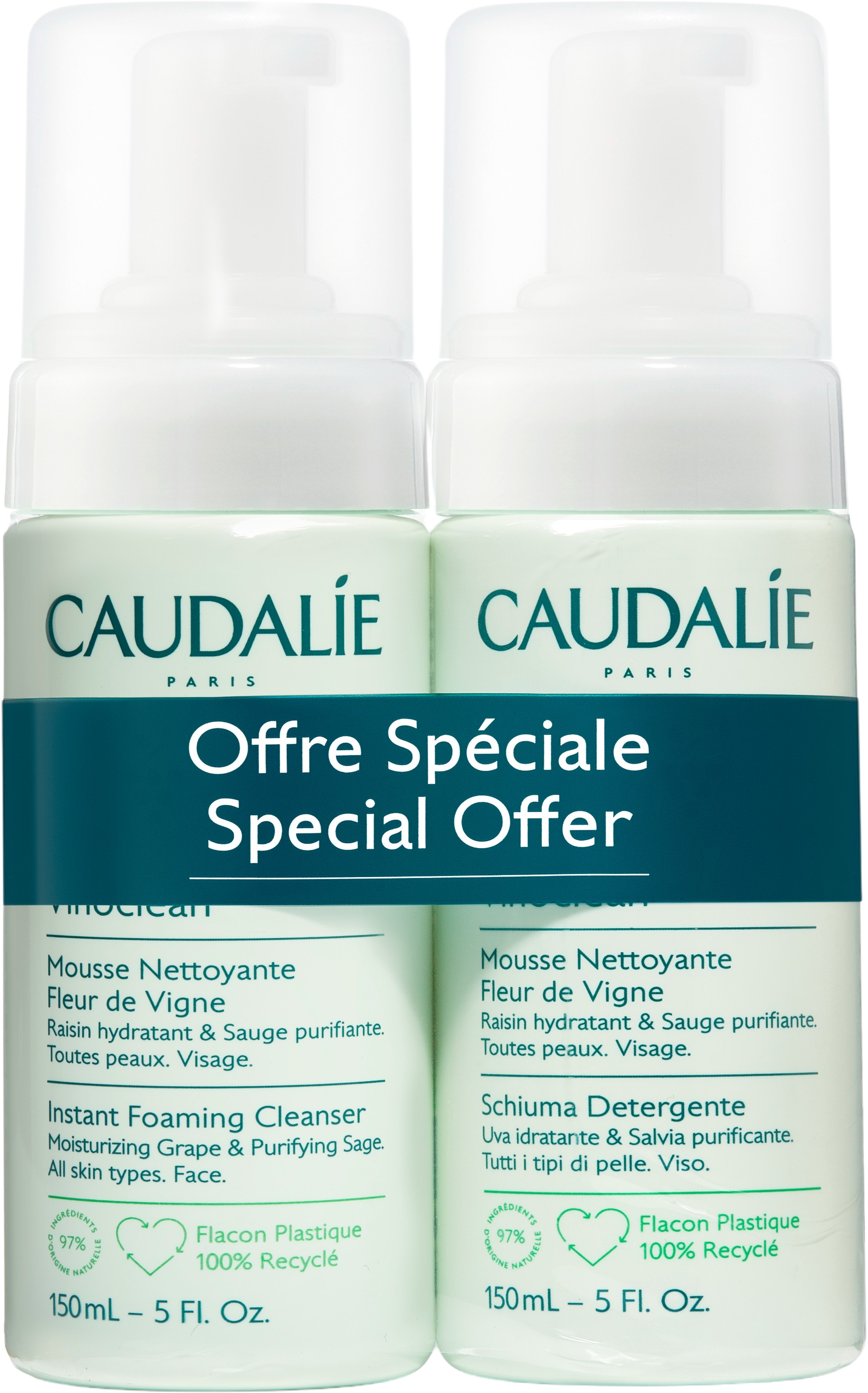 Caudalie Vinoclean Duo Mousse Nettoyante Visage, 150 ml (300 ml)
