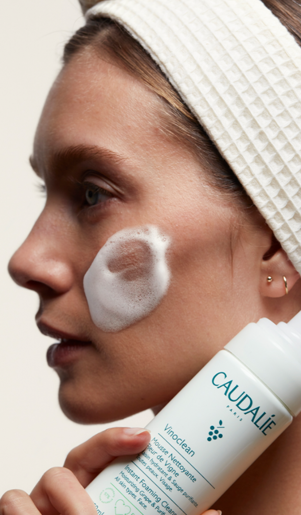 La Mousse Nettoyante Visage de la gamme Vinoclean de Caudalie va révolutionner votre routine beauté quotidienne. Ce soin nettoie la peau et la purifie en douceur, matin et soir. Cette lotion cristalline se transforme en une mousse aérienne et généreuse qui enveloppe votre peau d’un cocon de douceur, sans assécher la peau. Formulée sans savon avec 97 % d’ingrédients d’origine naturelle, sa base lavante ultra-douce est enrichie en sauge, camomille et raisin. Sans agents synthétiques, elle convient au nettoyage quotidien de tous les types de peau, même les plus sensibles.