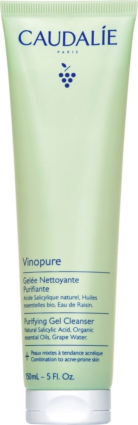 La Gelée Nettoyante Purifiante de la gamme Vinopure de Caudalie nettoie efficacement sans dessécher la peau. Elle élimine les cellules mortes, réduit visiblement les imperfections (comme les points noirs), resserre les pores et régule la production de sébum, le tout sans dessécher la peau. Cette gelée fraîche associe de l’acide salicylique purifiant d’origine naturelle, de l’eau de raisin bio hydratante et six huiles essentielles aux propriétés purifiantes. Elle laisse une sensation immédiate de fraîcheur et de propreté.